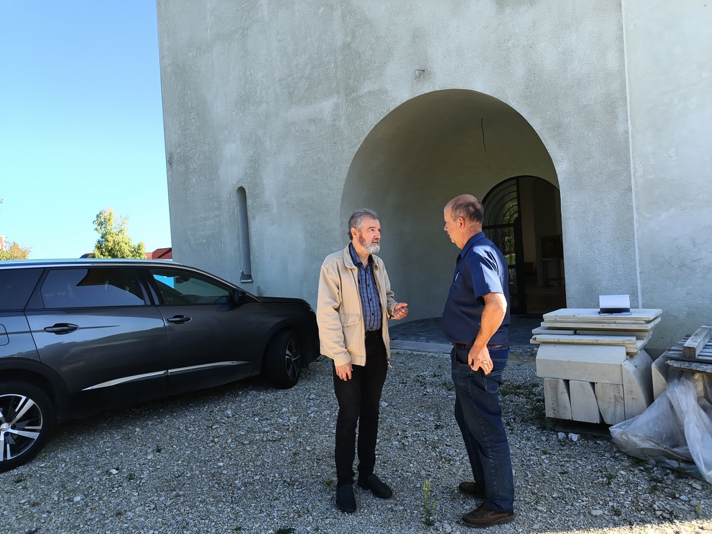 Секретарь приходского совета Елена Петерс организовала краткую встречу у храма с мэром города Хевиз господином Петером Насадашем помощника-советника правящего архиерея иерея Святослава Булаха по просьбе последнего.