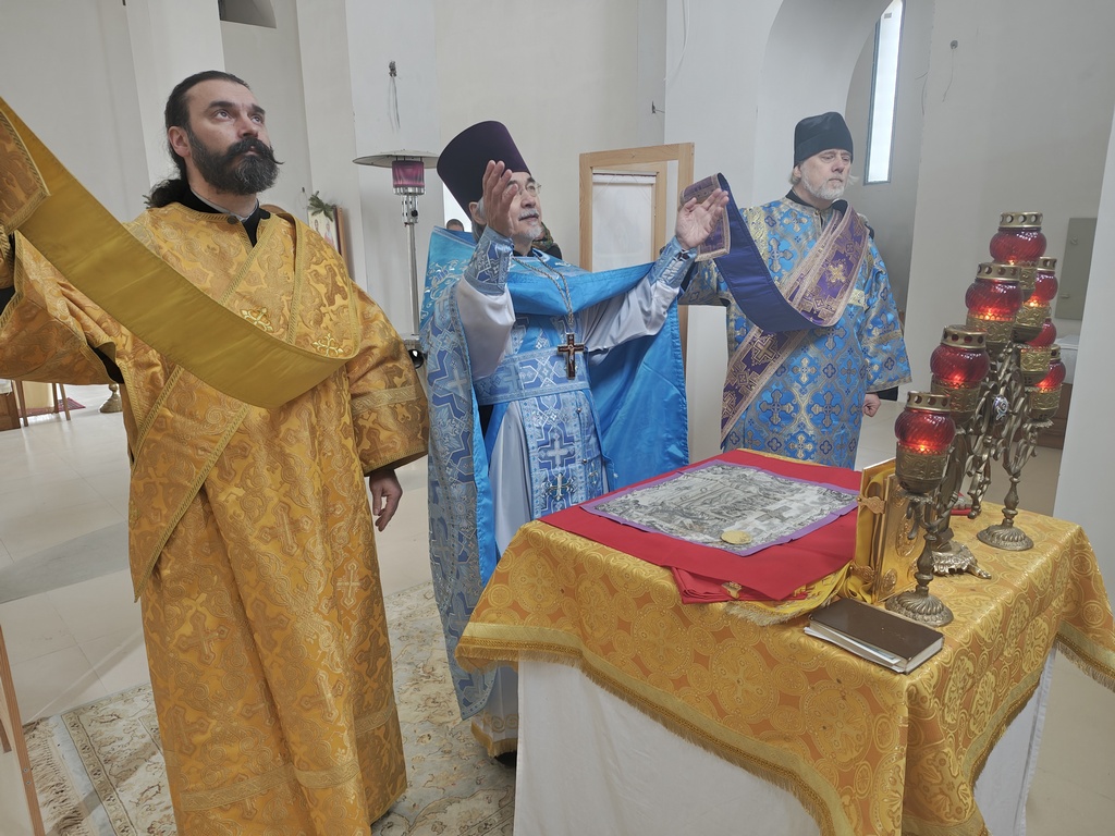 15 февраля в праздник Сретения Господа Бога и Спаса нашего Иисуса Христа настоятель Хевизского прихода протоиерей Николай Ким совершил Божественную литургию в строящемся храме в честь иконы Божией Матери «Живоносный Источник» в сослужении диаконов Стефана Вайно-Элиаша и Владимира Чепыжова.