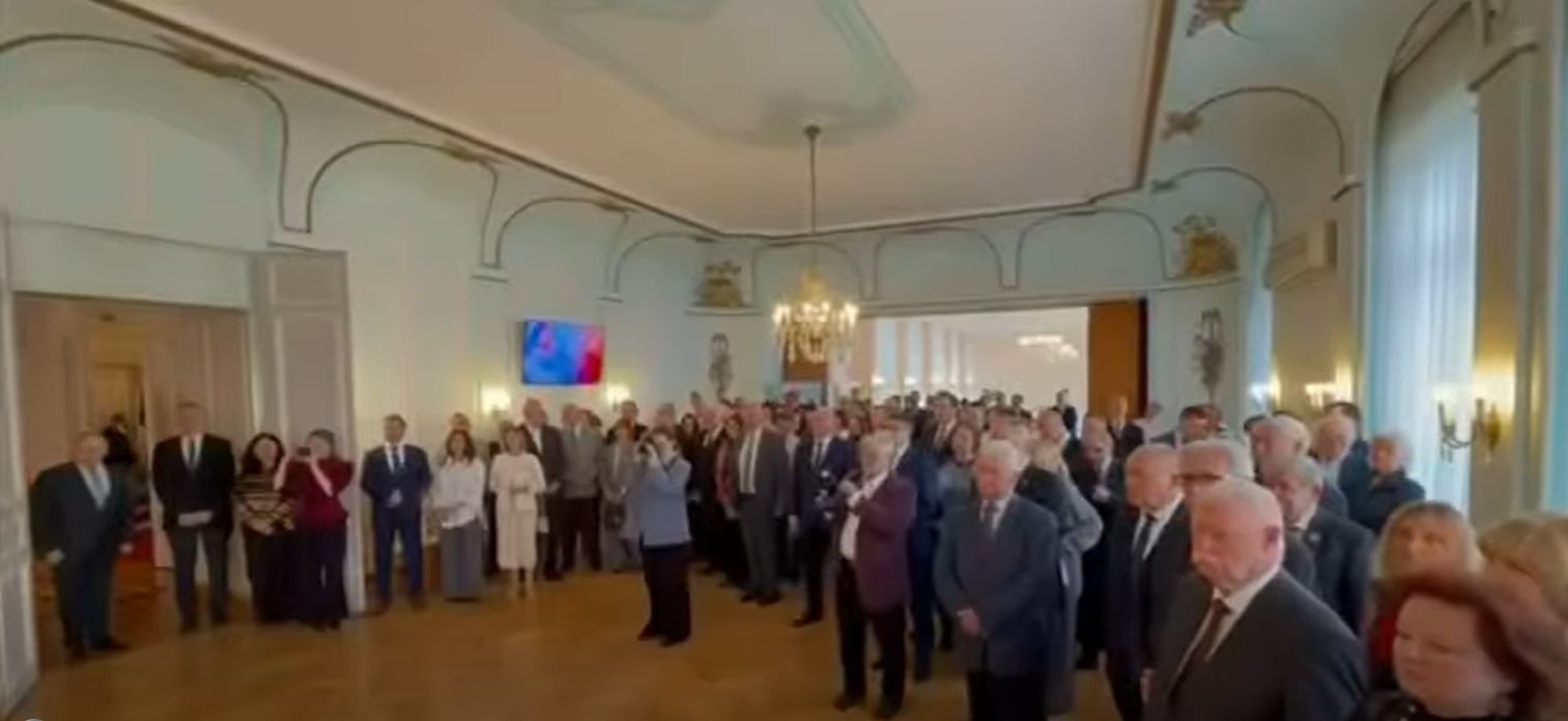 Прием открылся исполнением государственных гимнов России и Венгрии, затем Чрезвычайный и Полномочный Посол России господин Евгений Арнольдович Станиславов обратился к присутствующим с приветственной речью, которая переводилась также и на венгерский язык.