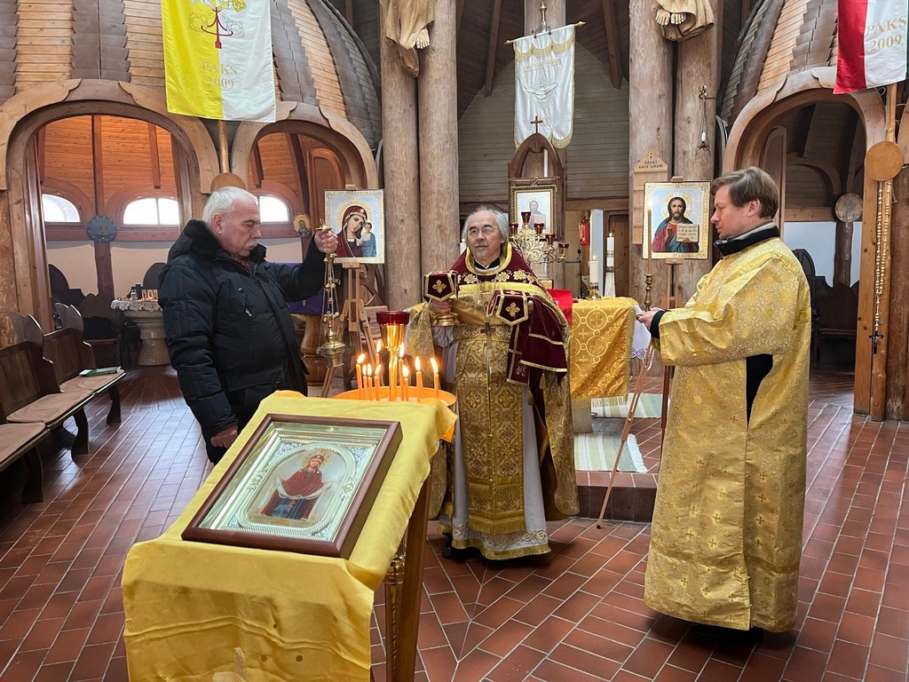 В воскресный день 22 февраля в Пакше настоятель Покровского прихода протоиерей Николай Ким совершил Божественную Литургию в храме Святого Духа. Чтец Владимир (староста прихода) читал Апостол. Пел приходской хор под управлением Наталии Прокк.